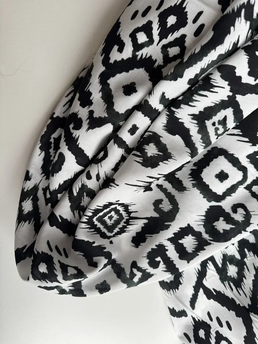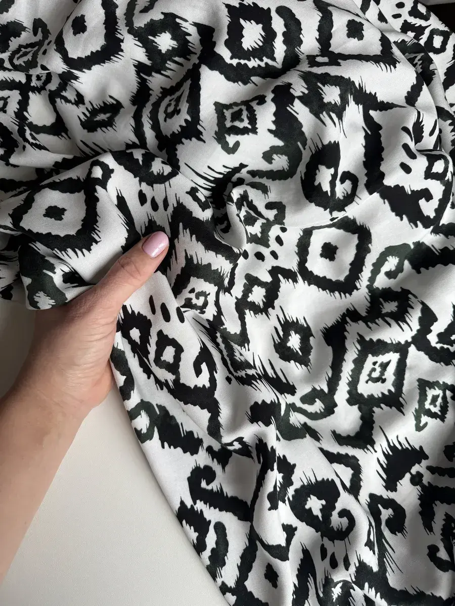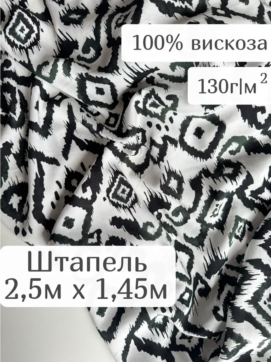 Нежная, натуральная вискозная ткань штапель идеальна для пошива легких платьев, сарафанов, блузок, топов, комбинезонов, пижам, сорочек и др. Штапель струящаяся, динамичная ткань, приятная на ощупь и комфортная в носке, красиво драпируется, не тянется, мнется, в светлых принтах имеет просвет. При заказе 2-х единиц и более ткань придет отдельными отрезами. Ткань тонкая, без эластана, не тянется. Очень приятна к телу, мягко лежит в складке и драпируется. Плотность 120 гр./м.кв. Длина отреза 250 см, ширина полотна 145 см. Усадка 6-8%. Уход за тканью: бережная стирка при 30 градусах, жидкими моющими средствами, отжим не более 600 оборотов в минуту. Перед раскроем рекомендована предварительная декатировка полотна. Красивый принт будет отлично смотреться в любой задумке будь то свободное платье, юбка или блуза!