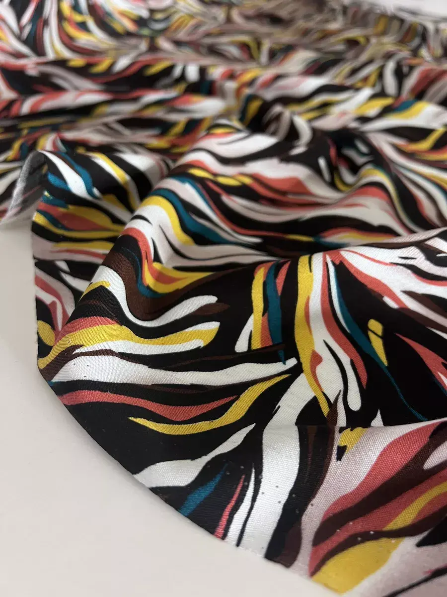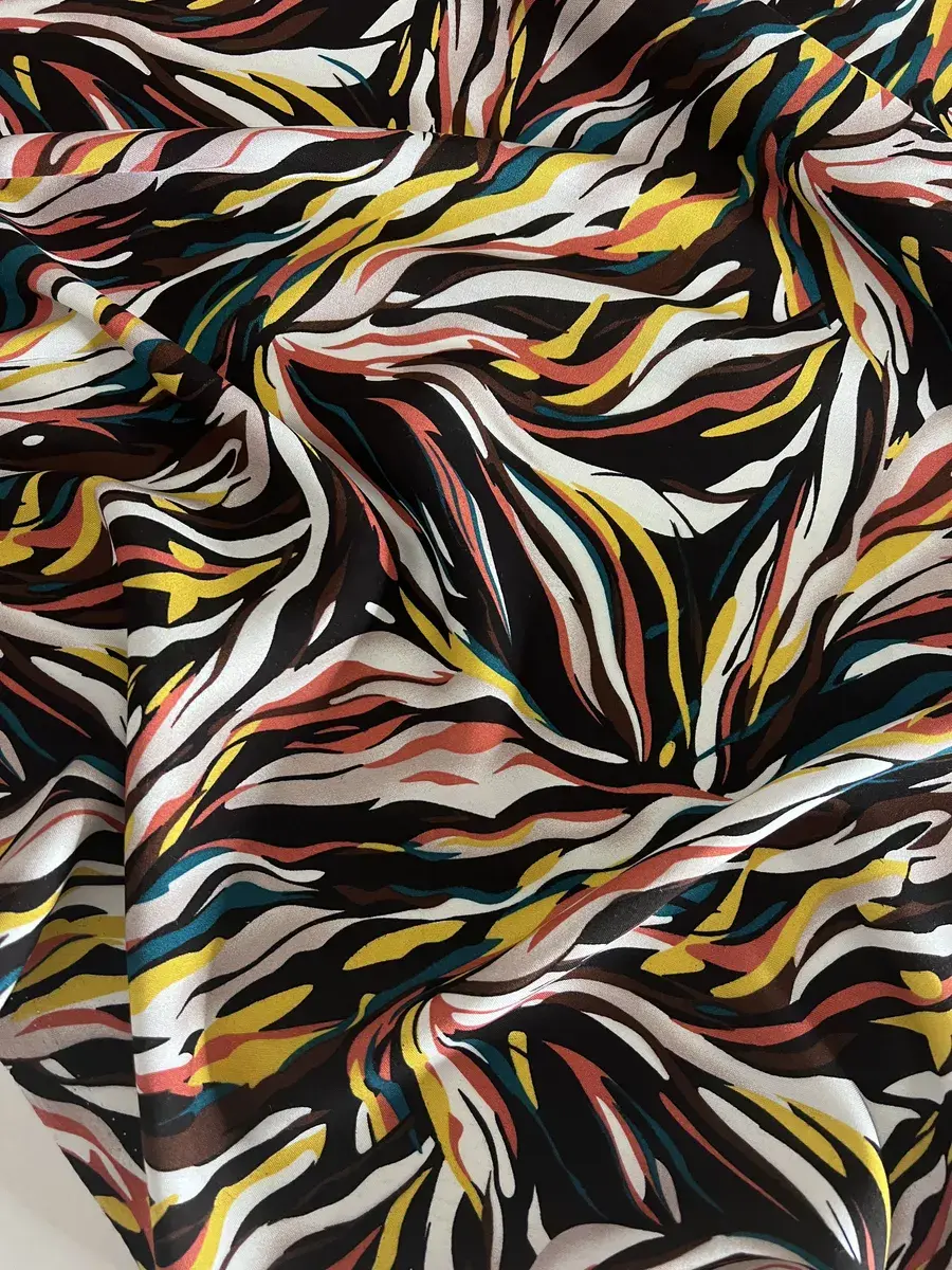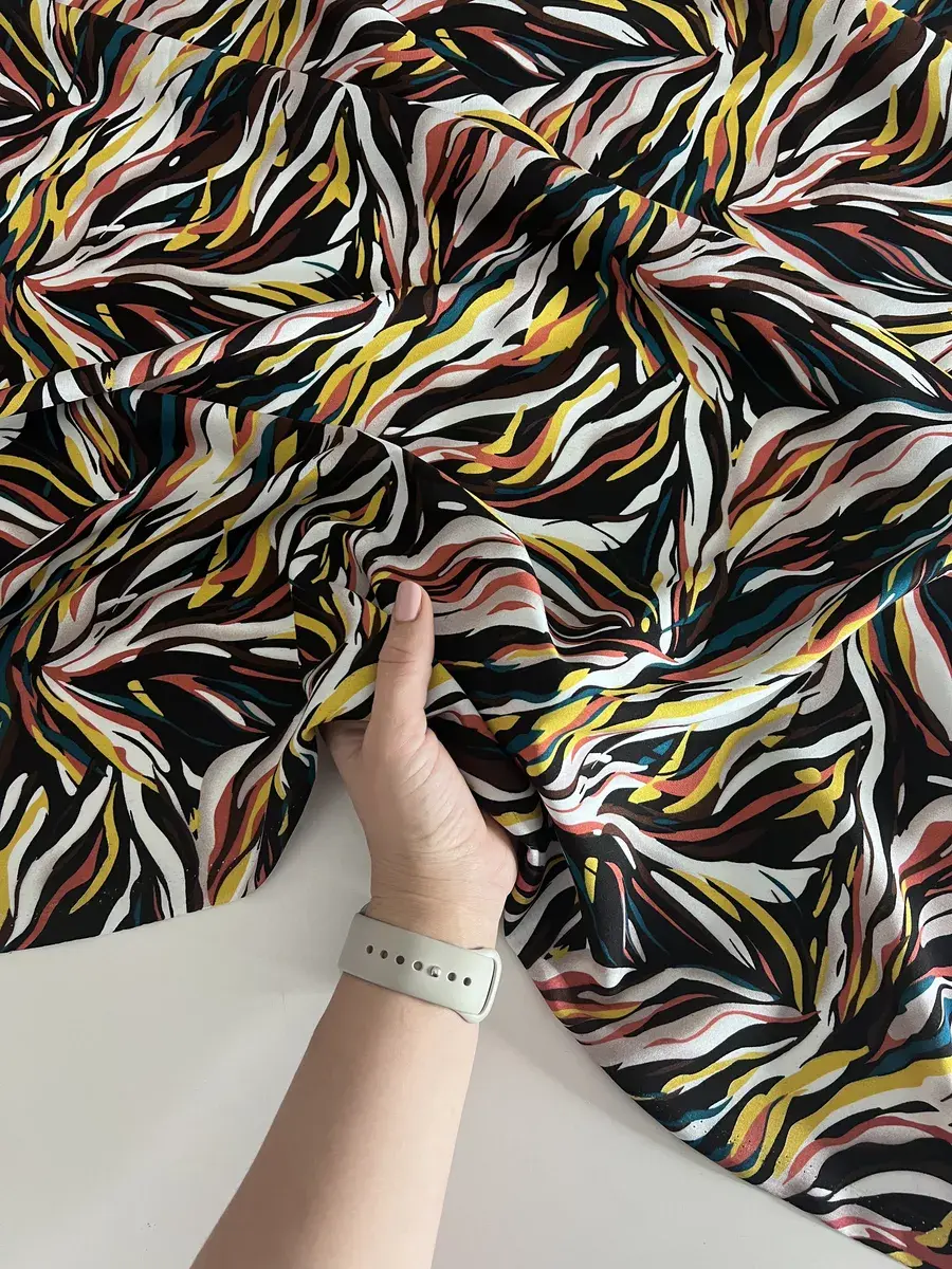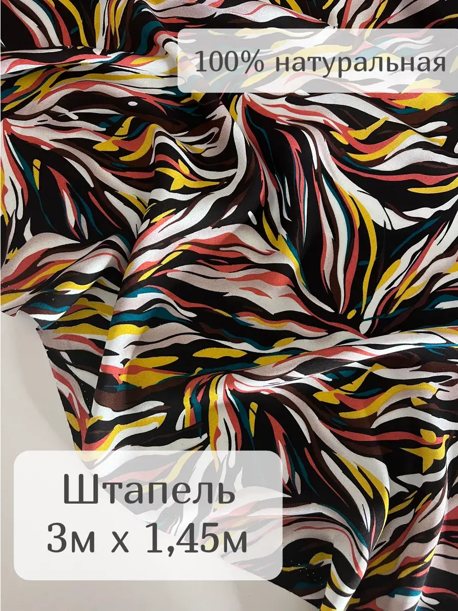 Нежная, натуральная вискозная ткань штапель идеальна для пошива легких платьев, сарафанов, блузок, топов, комбинезонов, пижам, сорочек и др. Штапель струящаяся, динамичная ткань, приятная на ощупь и комфортная в носке, красиво драпируется, не тянется, мнется, в светлых принтах имеет просвет. При заказе 2-х единиц и более ткань придет отдельными отрезами. Ткань тонкая, без эластана, не тянется. Очень приятна к телу, мягко лежит в складке и драпируется. Плотность 120 гр./м.кв. Длина отреза 300 см, ширина полотна 145 см. Усадка 6-8%. Уход за тканью: бережная стирка при 30 градусах, жидкими моющими средствами, отжим не более 600 оборотов в минуту. Перед раскроем рекомендована предварительная декатировка полотна. Красивый принт будет отлично смотреться в любой задумке будь то свободное платье, юбка или блуза!