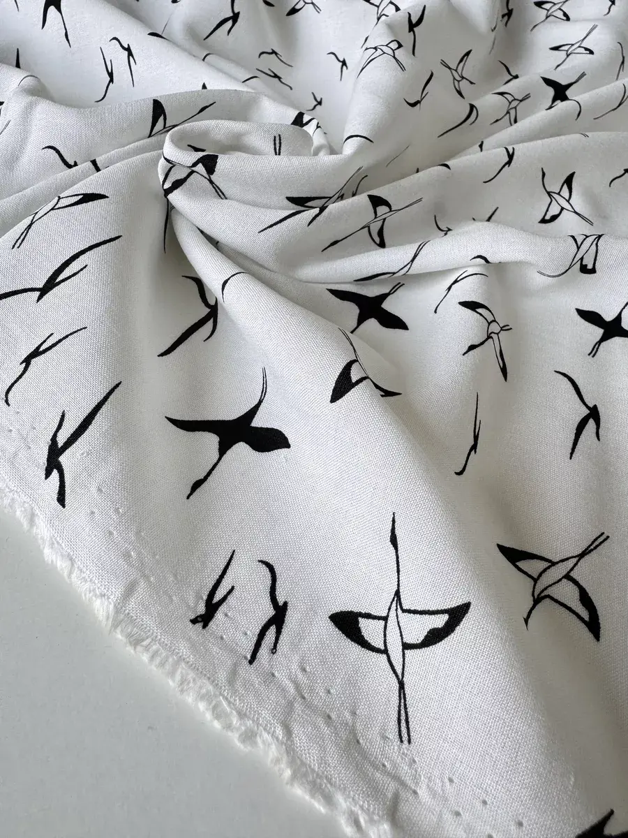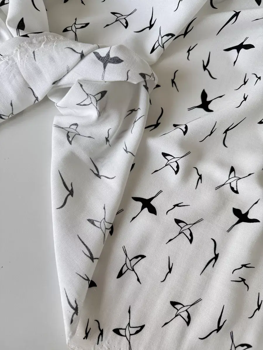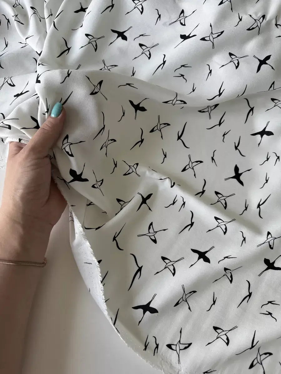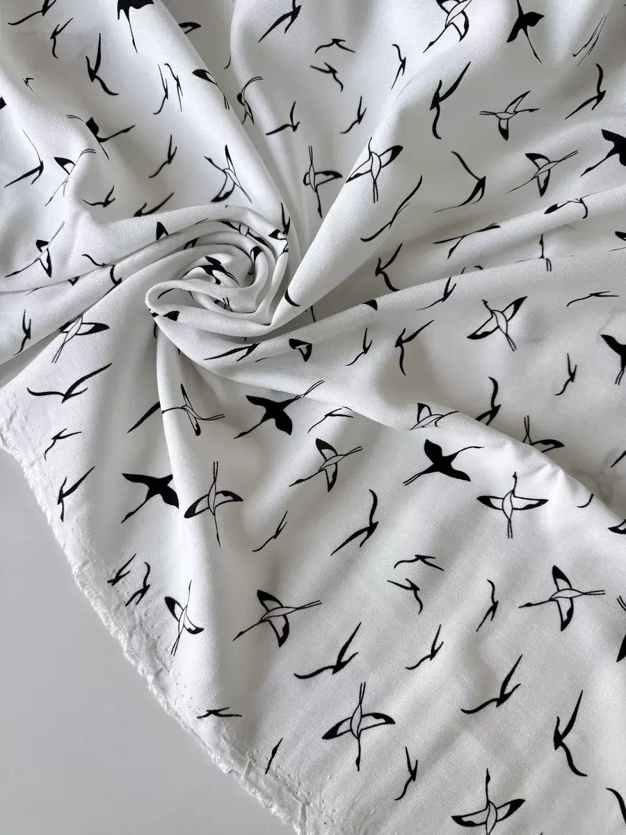Нежная, натуральная вискозная ткань штапель идеальна для пошива легких платьев, сарафанов, блузок, топов, комбинезонов, пижам, сорочек и др. Штапель струящаяся, динамичная ткань, приятная на ощупь и комфортная в носке, красиво драпируется, не тянется, мнется, в светлых принтах имеет просвет. При заказе 2-х единиц и более ткань придет отдельными отрезами. Ткань тонкая, без эластана, не тянется. Очень приятна к телу, мягко лежит в складке и драпируется. Плотность 120 гр./м.кв. Длина отреза 300 см, ширина полотна 145 см. Усадка 6-8%. Уход за тканью: бережная стирка при 30 градусах, жидкими моющими средствами, отжим не более 600 оборотов в минуту. Перед раскроем рекомендована предварительная декатировка полотна. Красивый принт будет отлично смотреться в любой задумке будь то свободное платье, юбка или блуза!