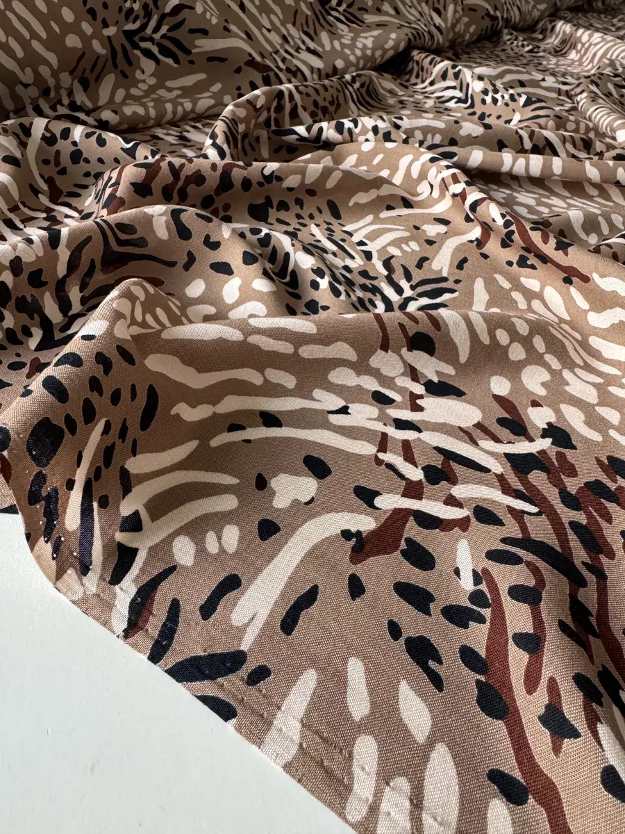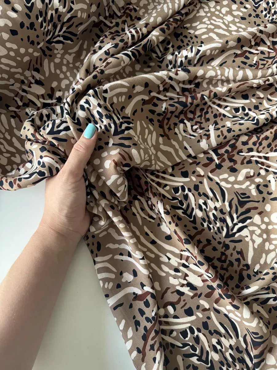 Эта ткань без эластана, поэтому она не тянется. Принт на ней может быть в горох или мелкий цветок. Штапель приятен к телу, мягко лежит в складках и хорошо драпируется.