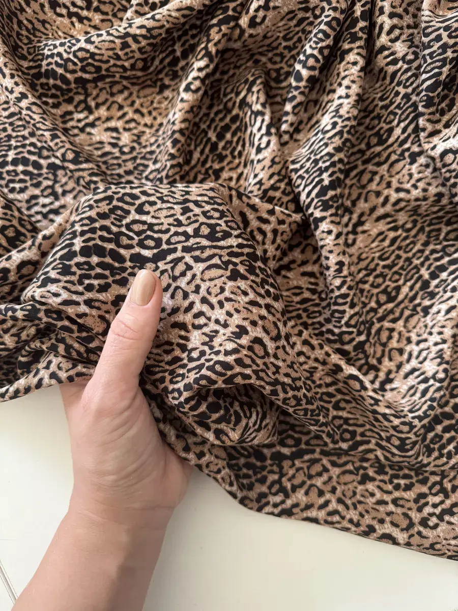 Эта ткань тонкая, без эластана, не тянется и имеет принт в горох или мелкий цветок. Она очень приятна к телу, мягко лежит в складке и драпируется. Штапель – это прочная и практичная ткань для легкой одежды.
