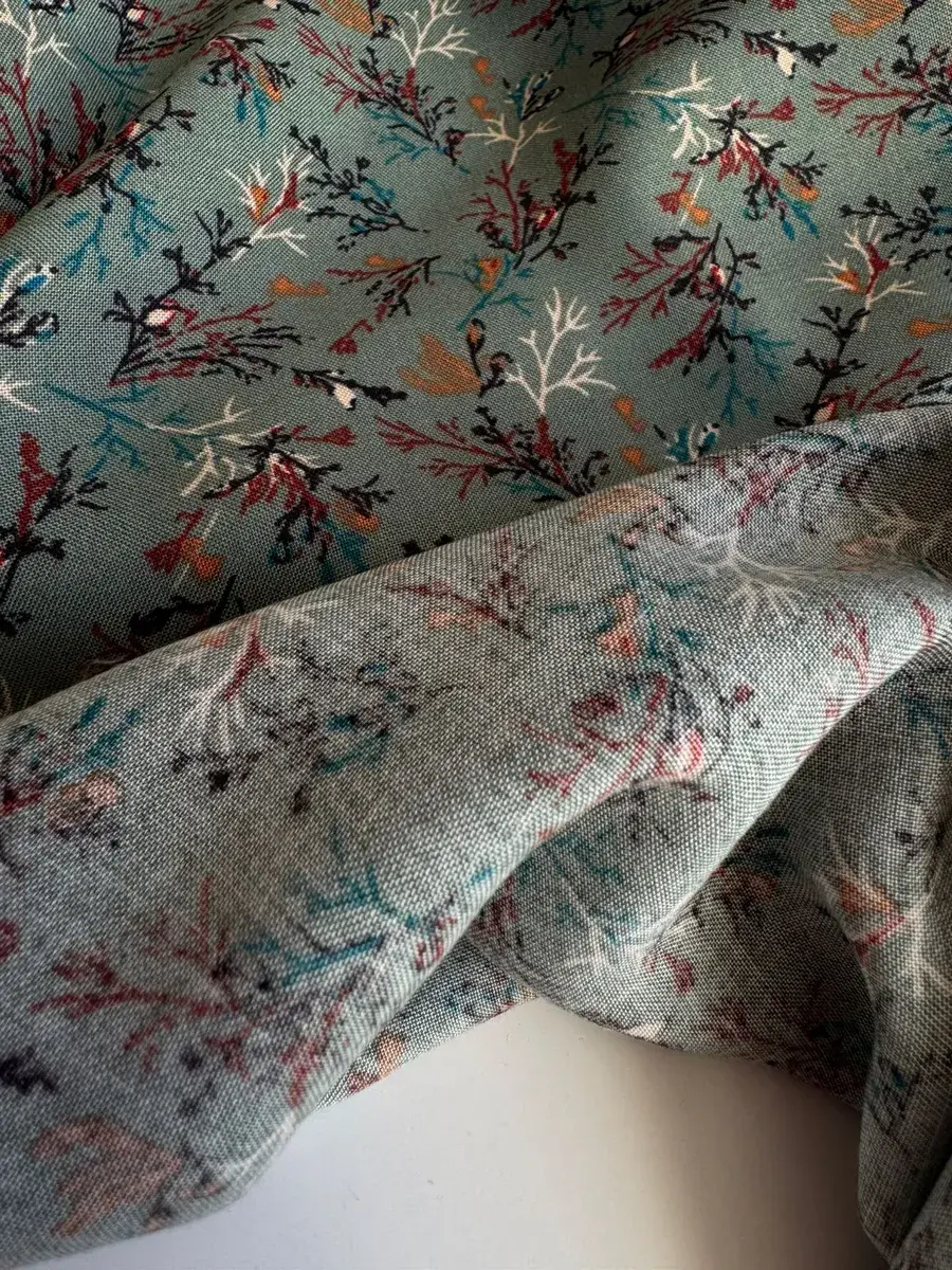 Вискозный штапель от MAMA Lama ТКАНИ обладает хорошими воздухопроницаемыми свойствами, что делает его комфортным в жаркие дни, обеспечивая ощущение прохлады и свежести, сохраняясь при этом привлекательным под солнечными лучами. Нежная текстура материала мягко соприкасается с кожей, а гипоаллергенные свойства делают его безопасным для детей и людей с чувствительной кожей.