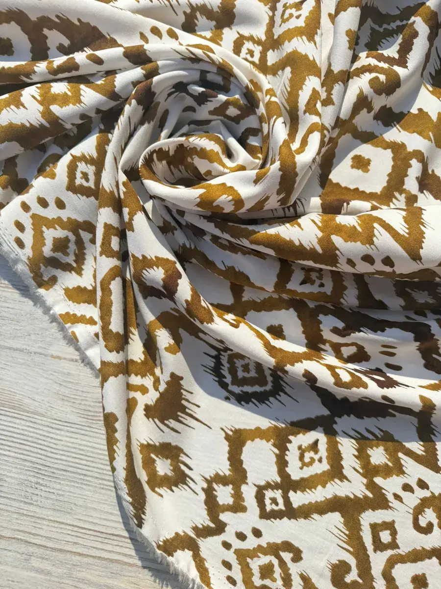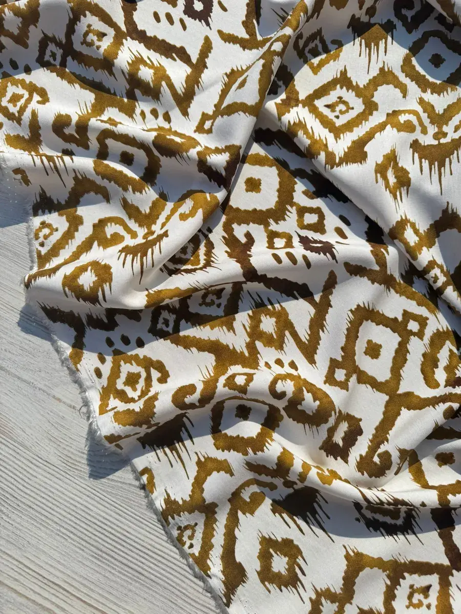 Штапельная ткань от бренда MAMA Lama ТКАНИ представляет собой высококачественный и легкий материал для шитья, состоящий на 100% из вискозных волокон. Длина отреза составляет 2,5 метра (отрез 250 см), ширина 145 см, а плотность ткани составляет 130 гр/м2. Эта летняя плательная ткань не обладает эластичностью, однако прекрасно драпируется, формируя изысканные складки. Она идеально подходит для создания юбок, платьев, а также легких блузок и топов. Рекомендуется использование подкладки для светлых оттенков.