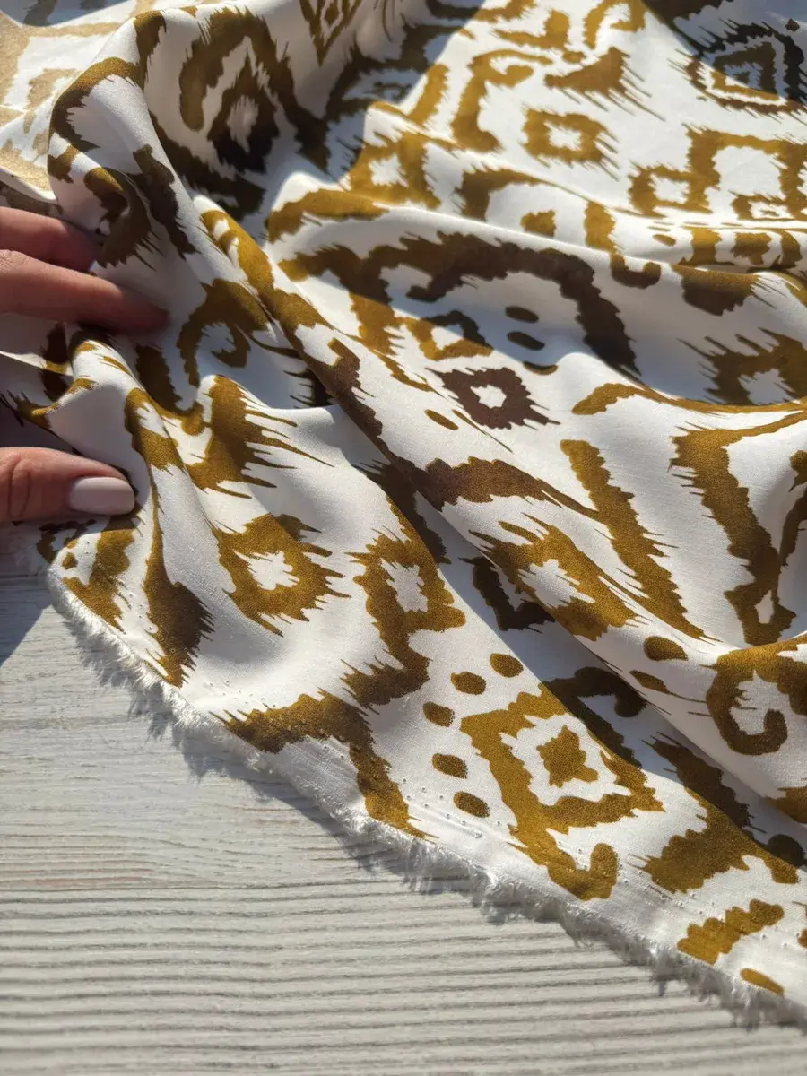 Вискозный штапель от MAMA Lama ТКАНИ обладает хорошими воздухопроницаемыми свойствами и эффектом охлаждения, что делает его комфортным в жаркие дни, обеспечивая ощущение прохлады и свежести, сохраняясь при этом привлекательным под солнечными лучами. Нежная текстура материала мягко соприкасается с кожей, а гипоаллергенные свойства делают его безопасным для детей и людей с чувствительной кожей.