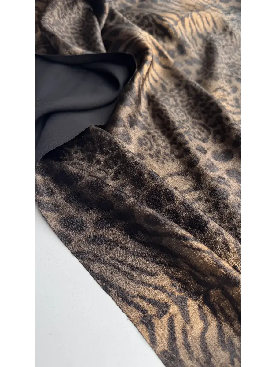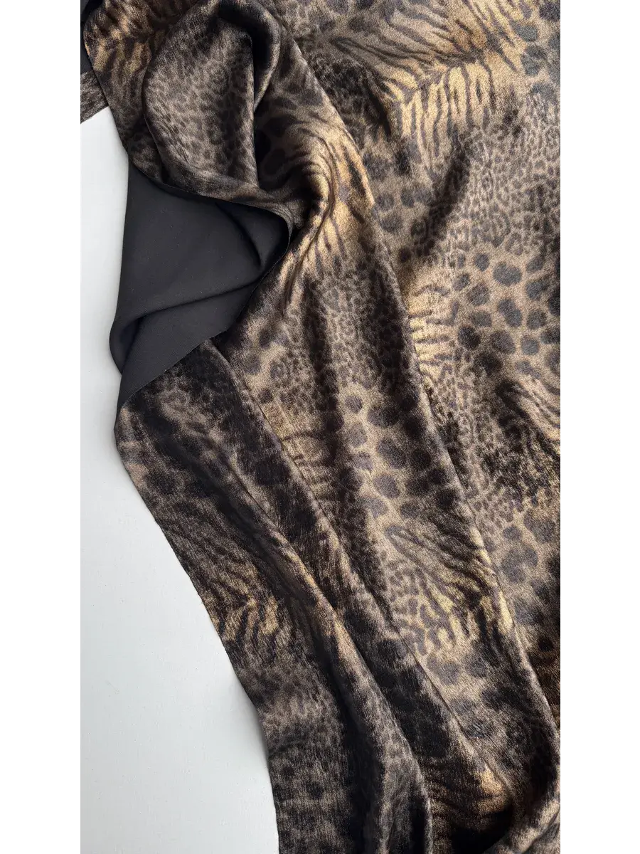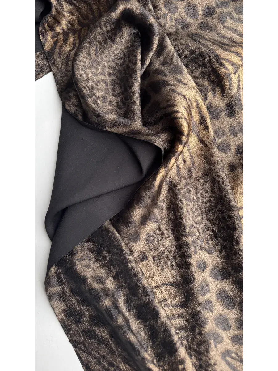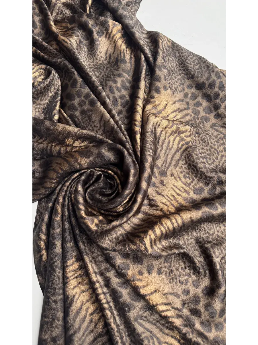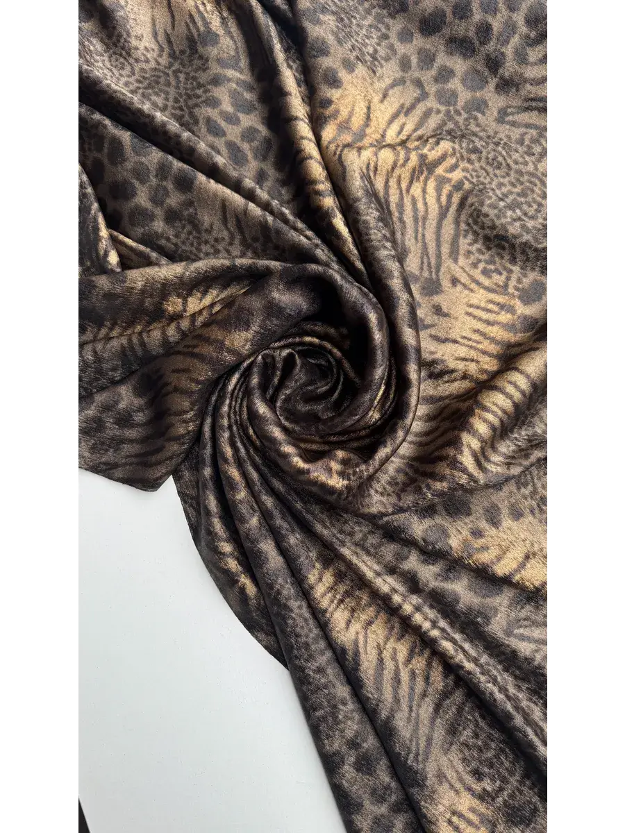 Уникальная ткань "Шелк с напылением" представляет собой высококачественный материал, произведенный в Китае с учетом современных стандартов текстильной индустрии. Сочетание черного и золотого оттенков придает этому шелку мультиколорный эффект, подчеркивающий изысканность и благородство готового изделия. Плотность изделия составляет 160 грамм на метр погонный, что обеспечивает его достаточную прочность, сохраняя при этом легкость и воздушность.