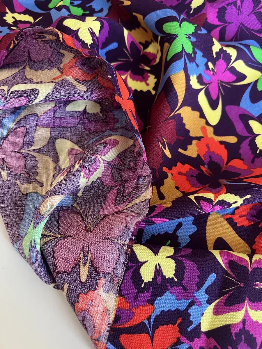 Вискозный штапель от MAMA Lama ТКАНИ обладает хорошими воздухопроницаемыми свойствами, что делает его комфортным в жаркие дни, обеспечивая ощущение прохлады и свежести, сохраняясь при этом привлекательным под солнечными лучами. Нежная текстура материала мягко соприкасается с кожей, а гипоаллергенные свойства делают его безопасным для детей и людей с чувствительной кожей.