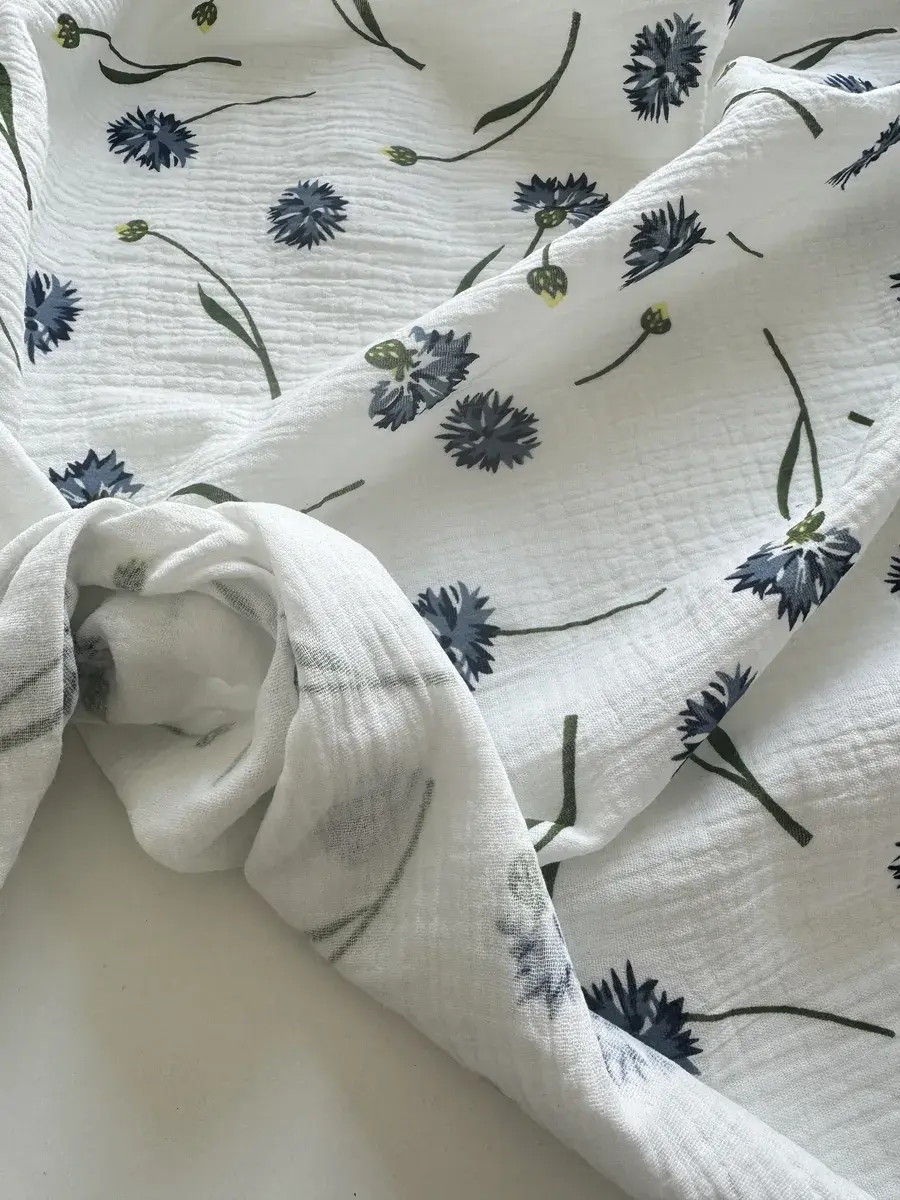 MAMA Lama ТКАНИ добавляет в свой ассортимент двухслойный жатый муслин. Это хлопковое волокно особого плетения. Муслин- ткань нежнейшая и незаменима для детей с самого рождения. Муслин имеет воздушную структуру с многочисленными воздушными каналами. Эти каналы поддерживают постоянное "дыхание" ткани и сохраняют тепло. Не смотря на свою рыхлость муслин довольно износостойкая ткань. Нити для изготовления полотна всегда плотно скручены, что придает изделию прочность. Из минусов муслина - ограничения по t стирки, которая не должна превышать 30-40 градусов. Из муслина шьют не только изделия для малышей, но и платья, сарафаны, рубашки, блузки и многое другое. Допустимая погрешность +-1-2 см. Длина отреза 170 см, ширина 135-145 см (ткань жатая). Плотность ткани 130 г/м2. После покупки отрез необходимо декатировать (постирать). Стирка при температуре не выше 40 градусов и отжимом не более 600-800 оборотов в минуту. Не используйте отбеливающие средства. Усадка ткани составляет 3% по утку, 4% по долевой нити.У нас большой ассортимент тканей. Нажимайте на наш логотип и отправляйтесь в мир хлопковых тканей!