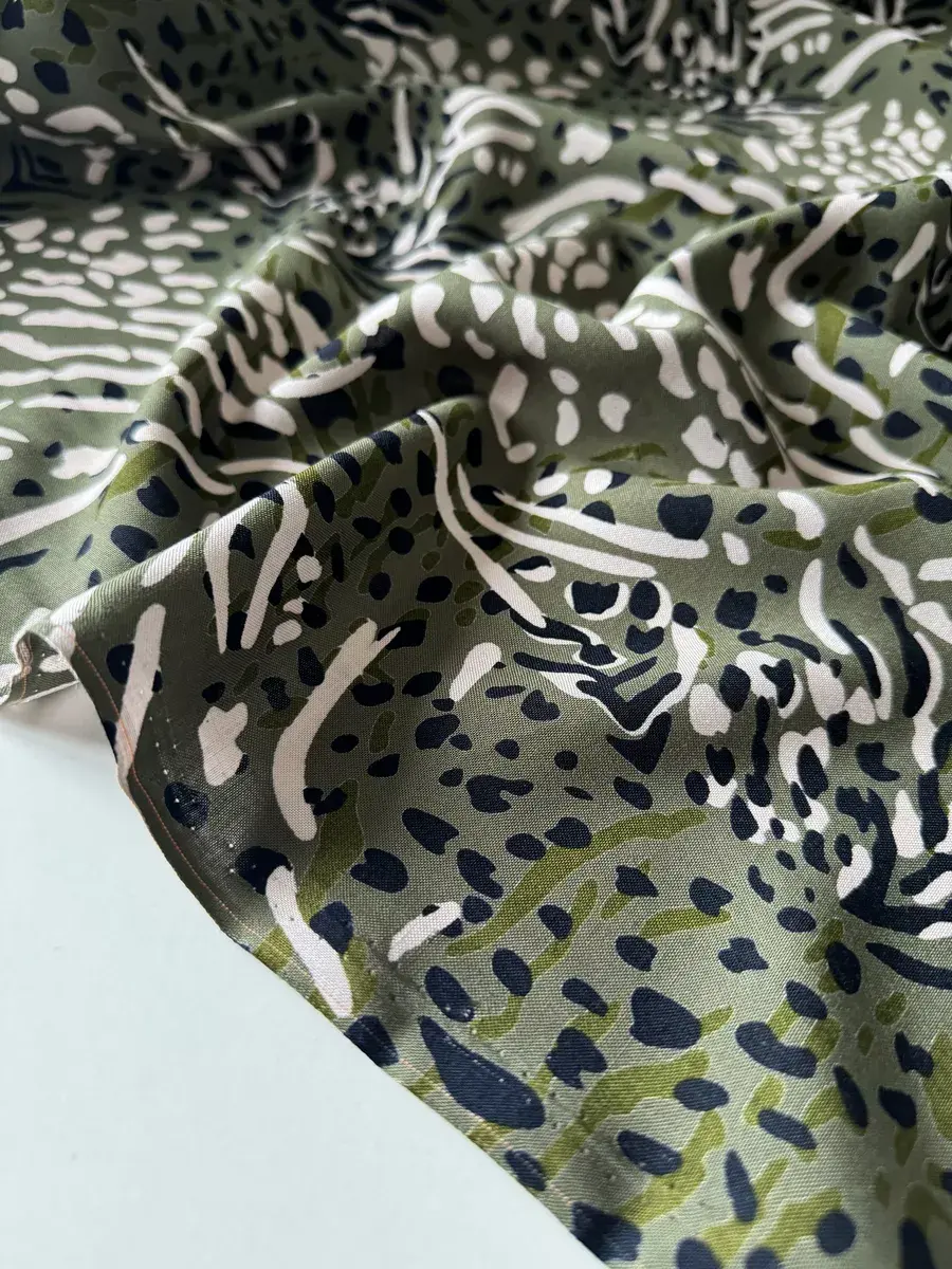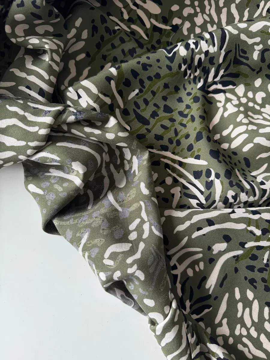 Ткань тонкая, но прочная, без эластана. Она не тянется и не мнется, поэтому ее легко шить и носить. Плотность ткани составляет 110 г/м², что делает ее комфортной для тела и мягкой на ощупь.