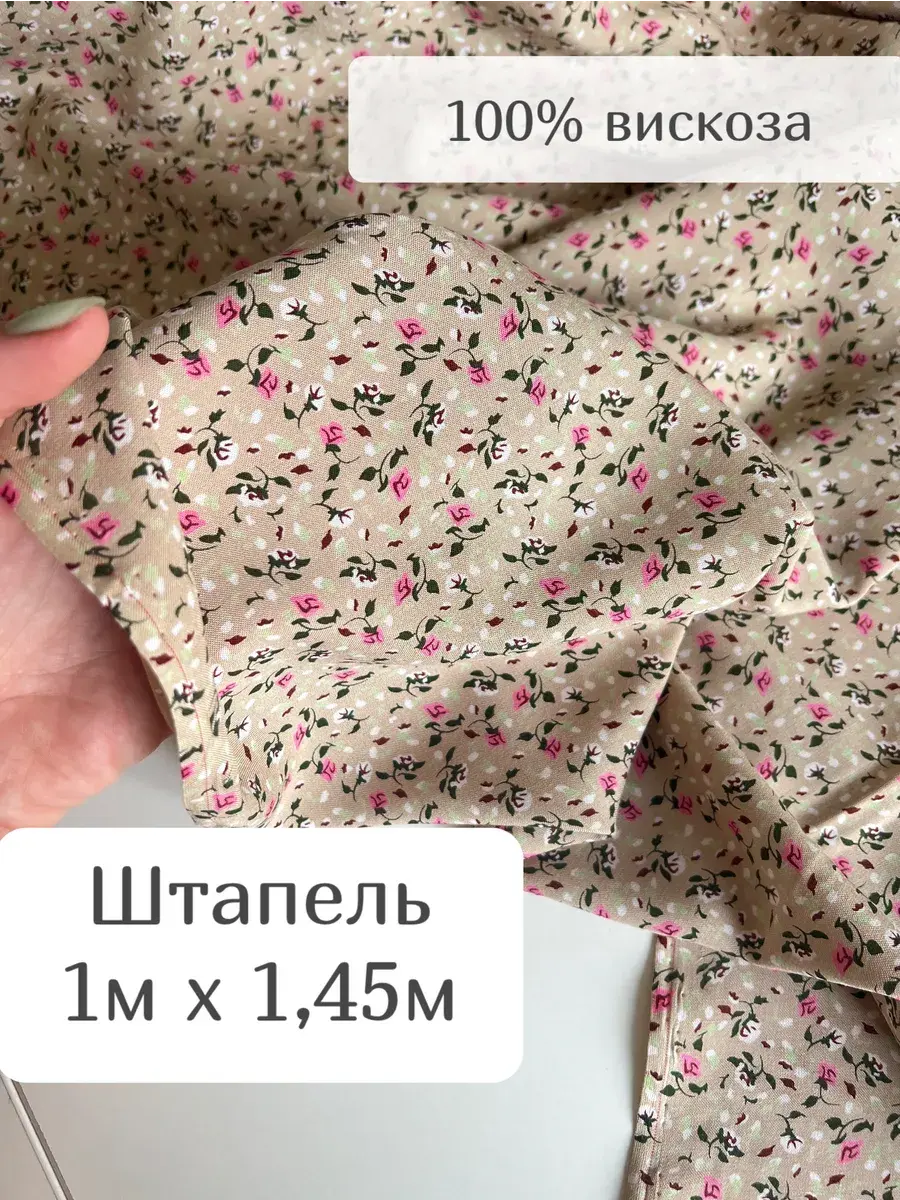 Ткань тонкая, но прочная, без эластана. Она не тянется и не мнется, поэтому ее легко шить и носить. Плотность ткани составляет 110 г/м², что делает ее комфортной для тела и мягкой на ощупь.