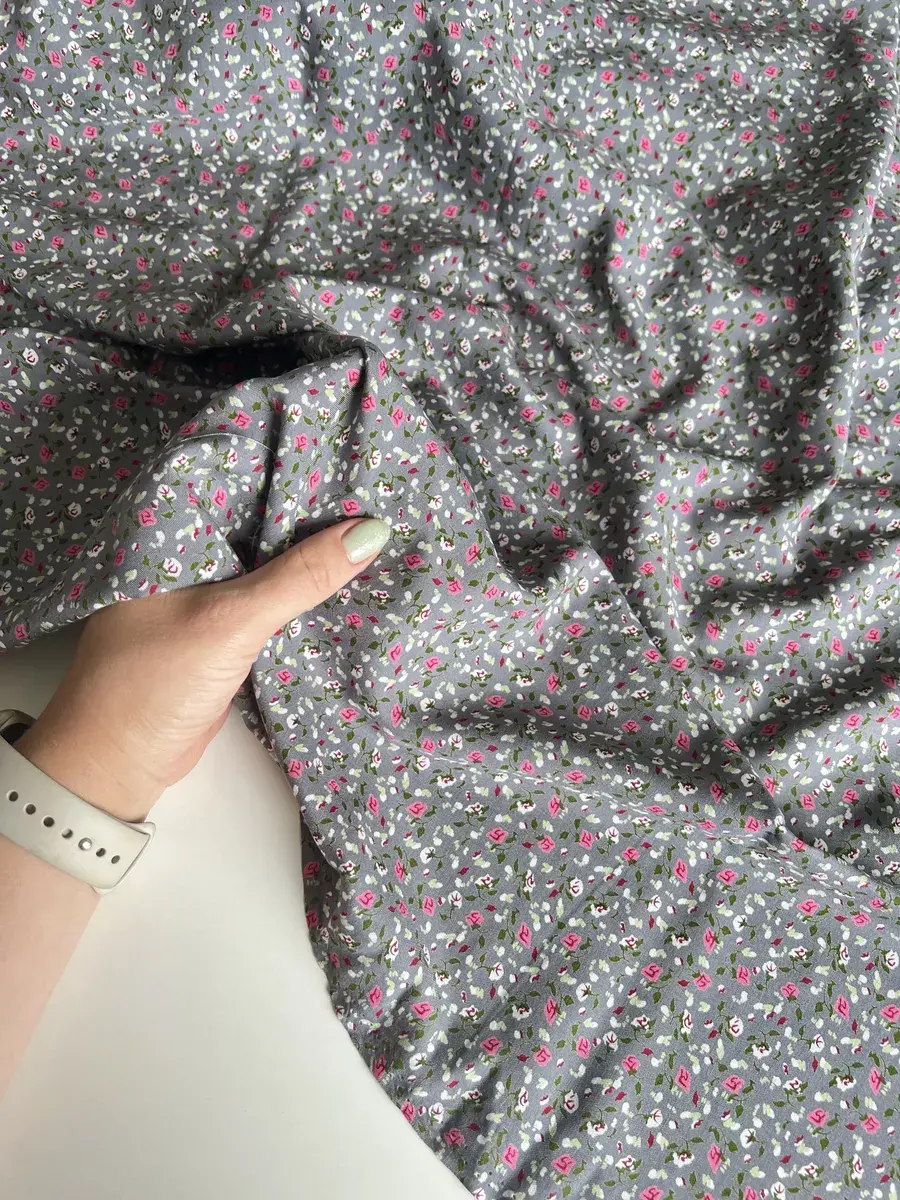 Уход за тканью очень прост: бережная стирка при температуре 30 градусов, отжим не более 600 оборотов в минуту и использование жидких моющих средств. Перед раскроем рекомендуется провести предварительную декатировку полотна. Красивый принт ткани будет отлично смотреться в любой вещи, будь то свободное платье, юбка или блуза!