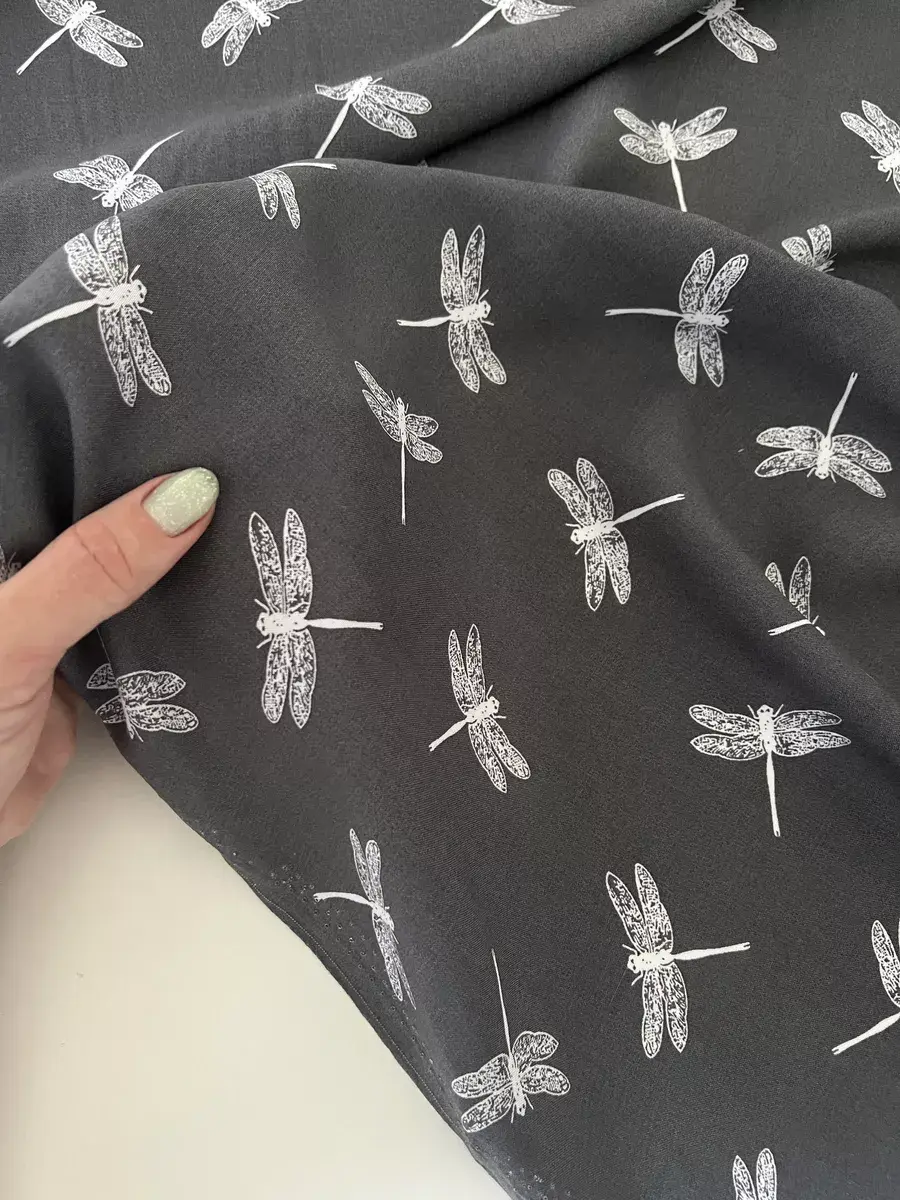 Уход за тканью очень прост: бережная стирка при температуре 30 градусов, отжим не более 600 оборотов в минуту и использование жидких моющих средств. Перед раскроем рекомендуется провести предварительную декатировку полотна. Красивый принт ткани будет отлично смотреться в любой вещи, будь то свободное платье, юбка или блуза!