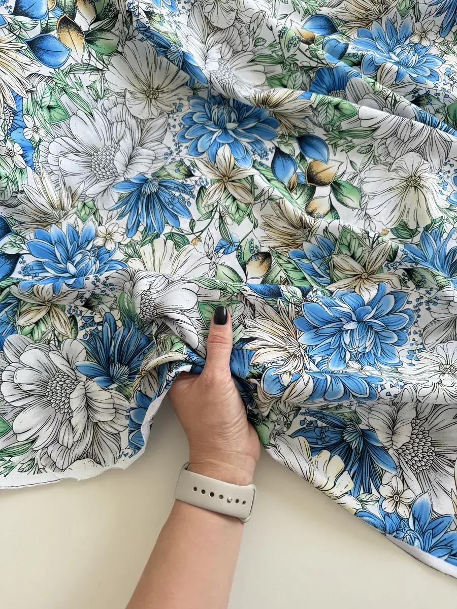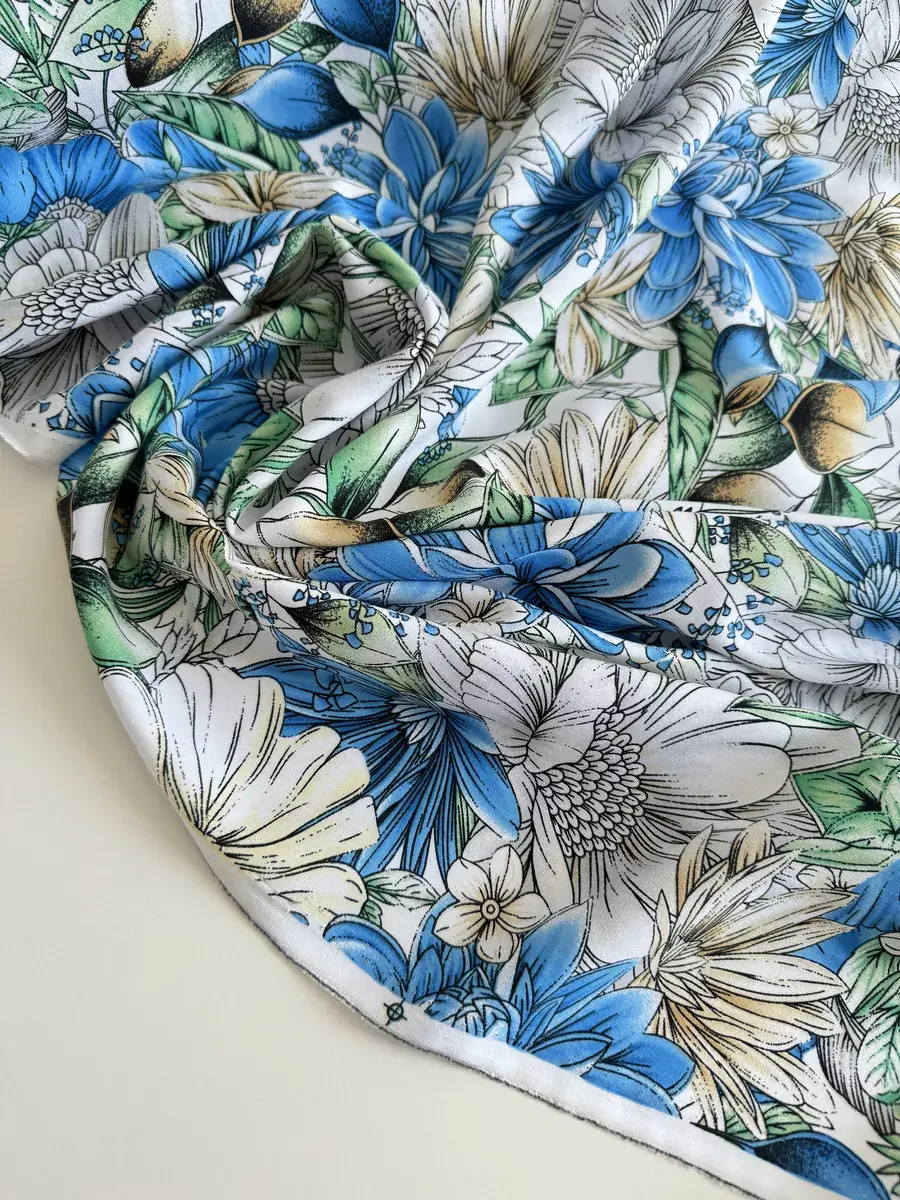 Нежная, натуральная вискозная ткань штапель идеальна для пошива легких платьев, сарафанов, блузок, топов, комбинезонов, пижам, сорочек и др. Штапель струящаяся, динамичная ткань, приятная на ощупь и комфортная в носке, красиво драпируется, не тянется, мнется, в светлых принтах имеет просвет. При заказе 2-х единиц и более, ткань придет отдельными отрезами. Ткань тонкая, без эластана, не тянется. Очень приятна к телу, мягко лежит в складке и драпируется. Плотность 120 гр./м.кв. Длина отреза 150 см, ширина полотна 145 см. Усадка 6-8%. Уход за тканью: бережная стирка при 30 градусах, жидкими моющими средствами, отжим не более 600 оборотов в минуту. Перед раскроем рекомендована предварительная декатировка полотна. Красивый принт будет отлично смотреться в любой задумке будь то свободное платье, юбка или блуза!