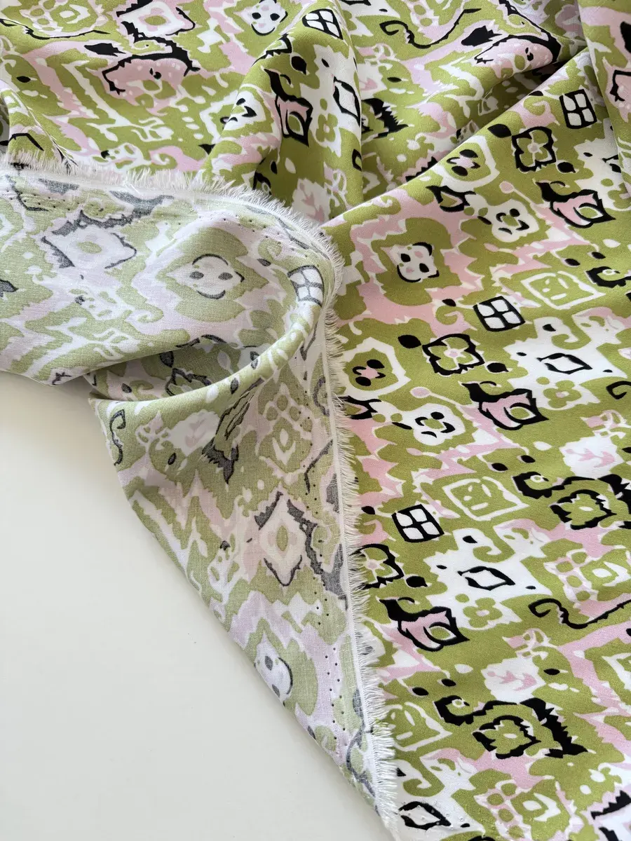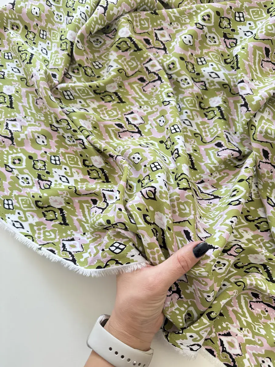 Нежная, натуральная вискозная ткань штапель идеальна для пошива легких платьев, сарафанов, блузок, топов, комбинезонов, пижам, сорочек и др. Штапель струящаяся, динамичная ткань, приятная на ощупь и комфортная в носке, красиво драпируется, не тянется, мнется, в светлых принтах имеет просвет. При заказе 2-х единиц и более ткань придет отдельными отрезами. Ткань тонкая, без эластана, не тянется. Очень приятна к телу, мягко лежит в складке и драпируется. Плотность 120 гр./м.кв. Длина отреза 300 см, ширина полотна 145 см. Усадка 6-8%. Уход за тканью: бережная стирка при 30 градусах, жидкими моющими средствами, отжим не более 600 оборотов в минуту. Перед раскроем рекомендована предварительная декатировка полотна. Красивый принт будет отлично смотреться в любой задумке будь то свободное платье, юбка или блуза!