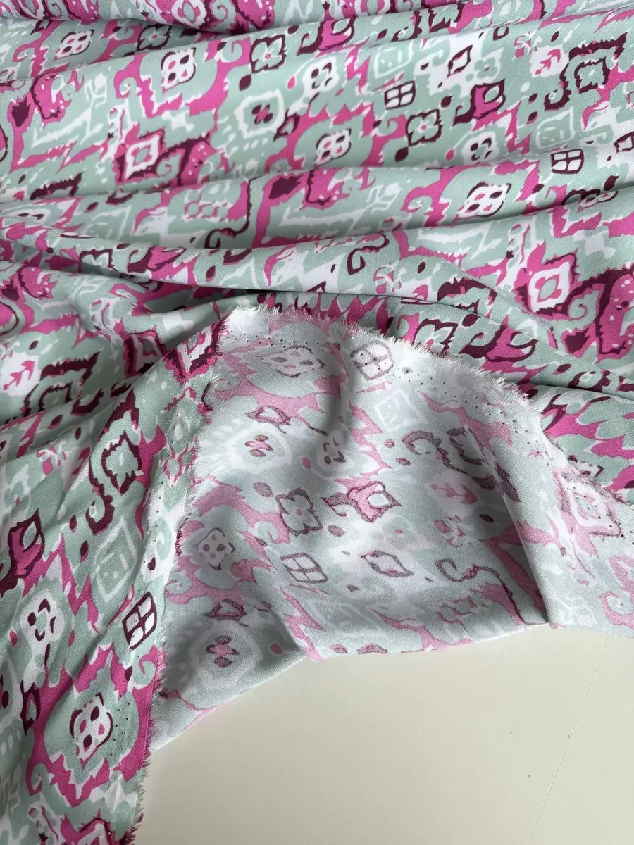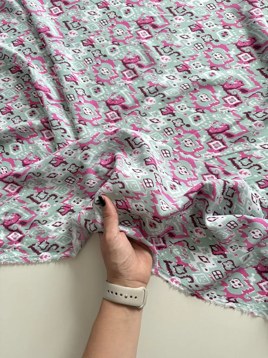 Нежная, натуральная вискозная ткань штапель идеальна для пошива легких платьев, сарафанов, блузок, топов, комбинезонов, пижам, сорочек и др. Штапель струящаяся, динамичная ткань, приятная на ощупь и комфортная в носке, красиво драпируется, не тянется, мнется, в светлых принтах имеет просвет. При заказе 2-х единиц и более ткань придет отдельными отрезами. Ткань тонкая, без эластана, не тянется. Очень приятна к телу, мягко лежит в складке и драпируется. Плотность 120 гр./м.кв. Длина отреза 300 см, ширина полотна 145 см. Усадка 6-8%. Уход за тканью: бережная стирка при 30 градусах, жидкими моющими средствами, отжим не более 600 оборотов в минуту. Перед раскроем рекомендована предварительная декатировка полотна. Красивый принт будет отлично смотреться в любой задумке будь то свободное платье, юбка или блуза!