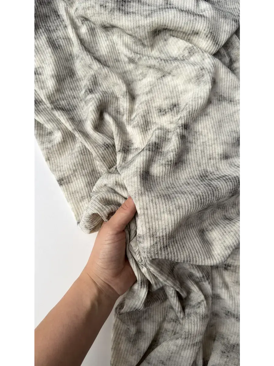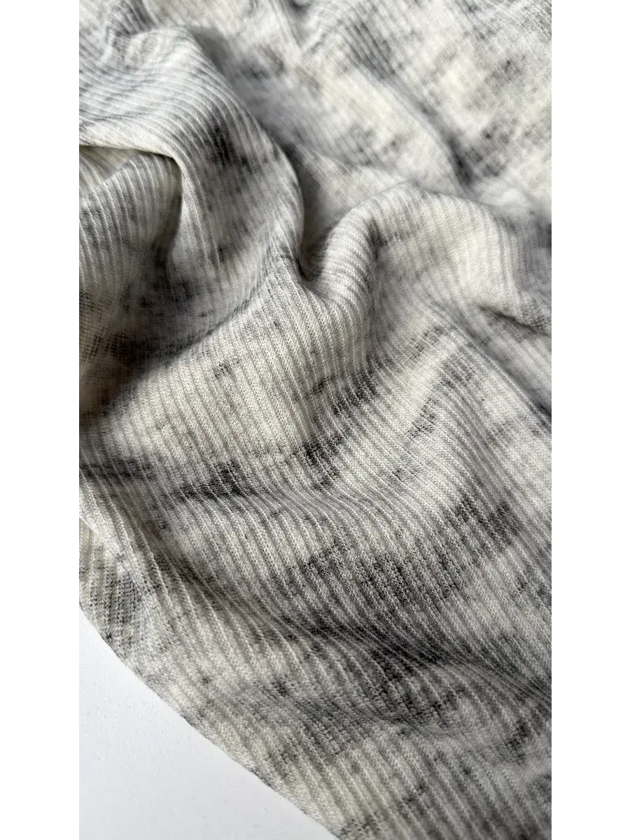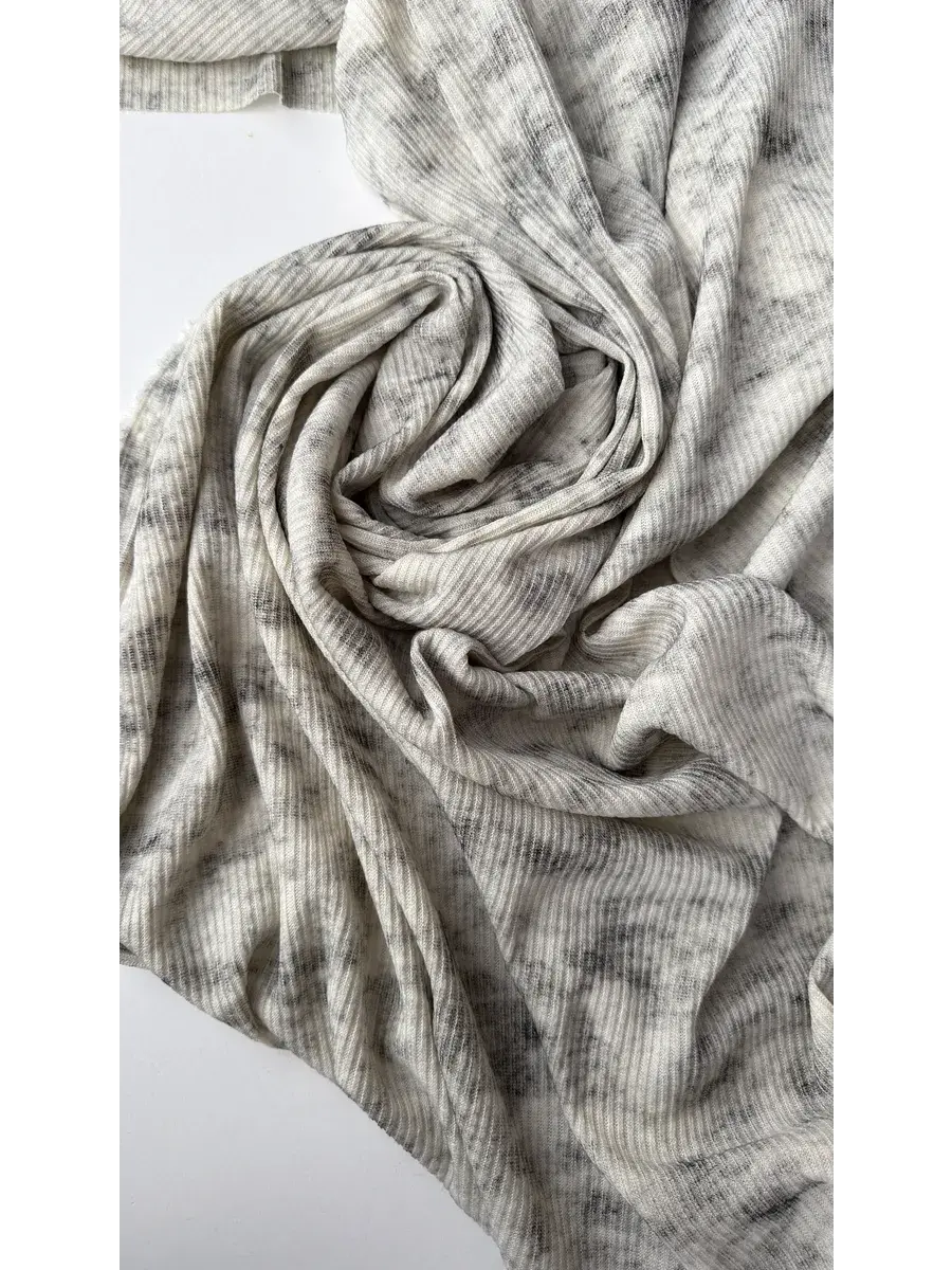 Тонкое и хорошо растяжимое вязаное полотно. Ширина вязаной полоски - 0.1см, расстояние между полосами - 0.1см. На лицевую сторону нанесён принт с уникальным винтажным эффектом "варенка". Трикотаж лапша применяется в пошиве различной одежды: платьев и юбок приталенных силуэтов, кардиганов, водолазок и свитеров.