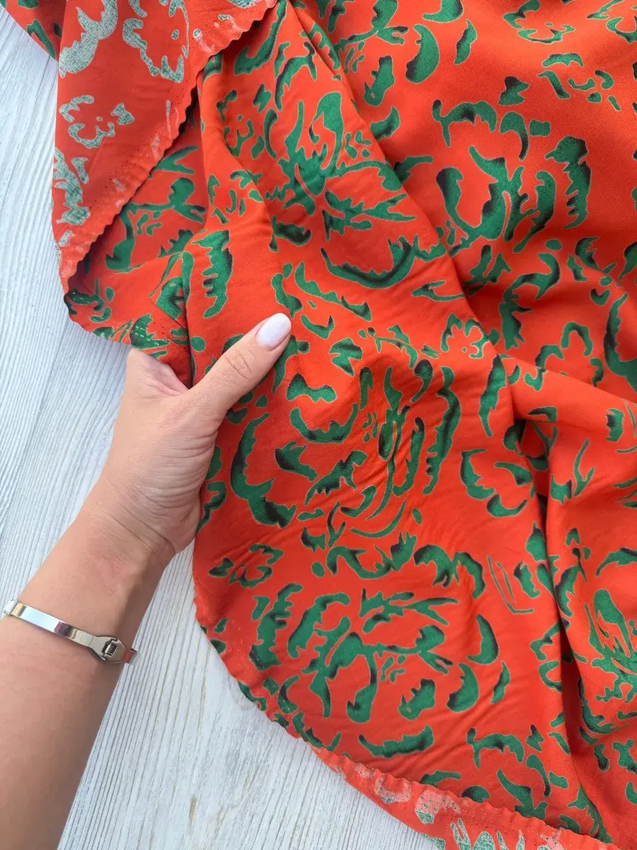 Вискозный штапель от MAMA Lama ТКАНИ обладает хорошими воздухопроницаемыми свойствами, что делает его комфортным в жаркие дни, обеспечивая ощущение прохлады и свежести, сохраняясь при этом привлекательным под солнечными лучами. Нежная текстура материала мягко соприкасается с кожей, а гипоаллергенные свойства делают его безопасным для детей и людей с чувствительной кожей.