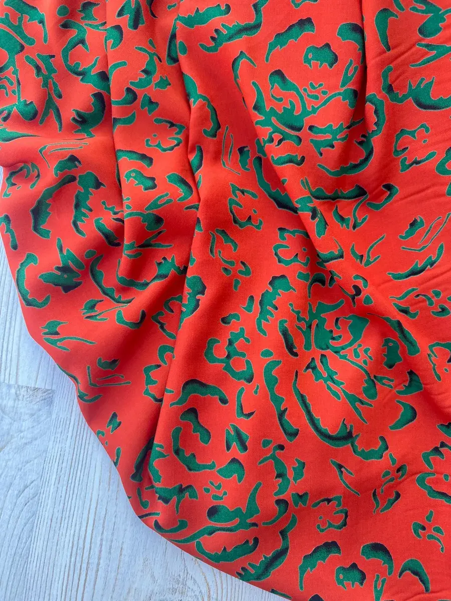 Штапельная ткань от бренда MAMA Lama ТКАНИ представляет собой высококачественный и легкий материал для шитья, состоящий на 100% из вискозных волокон. Длина отреза составляет 1,5 метра (отрез 150 см), ширина полотна 145 см, а плотность ткани составляет 130 гр/м2. Эта летняя плательная ткань не обладает эластичностью, однако прекрасно драпируется, формируя изысканные складки. Она идеально подходит для создания юбок, платьев, а также легких блузок и топов. Рекомендуется использование подкладки для светлых оттенков.