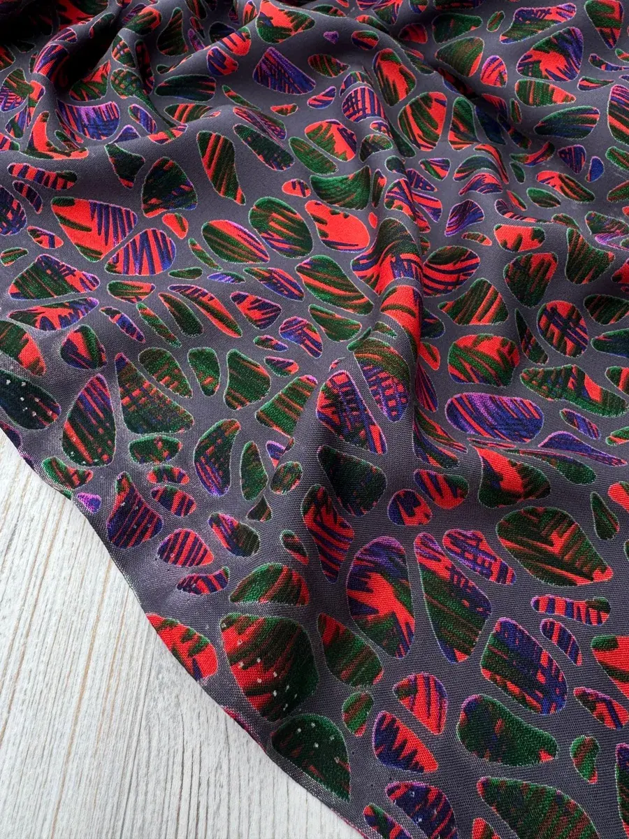 Вискозный штапель от MAMA Lama ТКАНИ обладает хорошими воздухопроницаемыми свойствами, что делает его комфортным в жаркие дни, обеспечивая ощущение прохлады и свежести, сохраняясь при этом привлекательным под солнечными лучами. Нежная текстура материала мягко соприкасается с кожей, а гипоаллергенные свойства делают его безопасным для детей и людей с чувствительной кожей.