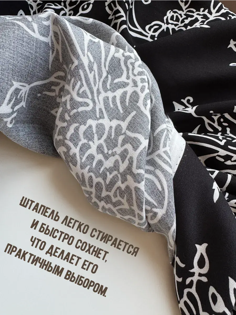 Откройте для себя шедевр в мире текстиля — ткань из вискозы, которая станет идеальной основой для ваших творческих проектов и швейных шедевров. Эта мягкая и приятная на ощупь плательная ткань с принтом идеально подходит для создания платьев, рубашек, юбок и других видов одежды. Благодаря своей летней легкости, эта ткань незаменима для летнего гардероба, однако, не стоит откладывать покупку до теплых дней — вискозный материал актуален и зимой, ведь в холодное время года вы можете с легкостью создавать из нее уютные и стильные вещи для дома, такие как пижамы и домашние комплекты.