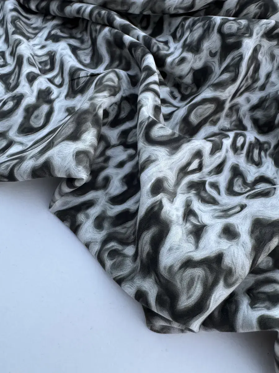 Штапельная ткань от бренда MAMA Lama ТКАНИ представляет собой высококачественный и легкий материал для шитья, состоящий на 100% из вискозных волокон. Длина отреза составляет 3 метра (отрез 300 см), ширина колеблется от 140 до 150 см, а плотность ткани составляет 120 гр/м2-130гр/м2. Эта летняя плательная ткань не обладает эластичностью, однако прекрасно драпируется, формируя изысканные складки. Она идеально подходит для создания юбок, платьев, а также легких блузок и топов. Рекомендуется использование подкладки для светлых оттенков.