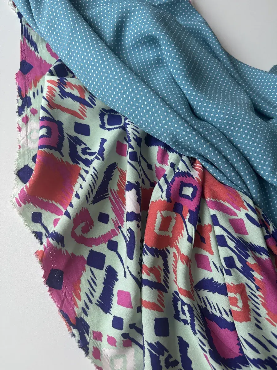 Откройте для себя шедевр в мире текстиля — ткань из вискозы, которая станет идеальной основой для ваших творческих проектов и швейных шедевров. Эта мягкая и приятная на ощупь плательная ткань с принтом идеально подходит для создания платьев, рубашек, юбок и других видов одежды. Благодаря своей летней легкости, эта ткань незаменима для летнего гардероба, однако, не стоит откладывать покупку до теплых дней — вискозный материал актуален и зимой, ведь в холодное время года вы можете с легкостью создавать из нее уютные и стильные вещи для дома, такие как пижамы и домашние комплекты.