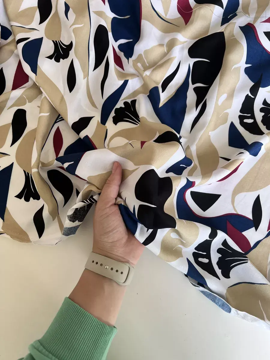 Штапельная ткань от бренда MAMA Lama ТКАНИ представляет собой высококачественный и легкий материал для шитья, состоящий на 100% из вискозных волокон. Длина отреза составляет 3 метра (отрез 300 см), ширина колеблется от 140 до 150 см, а плотность ткани составляет 120 гр/м2-130гр/м2. Эта летняя плательная ткань не обладает эластичностью, однако прекрасно драпируется, формируя изысканные складки. Она идеально подходит для создания юбок, платьев, а также легких блузок и топов. Рекомендуется использование подкладки для светлых оттенков.